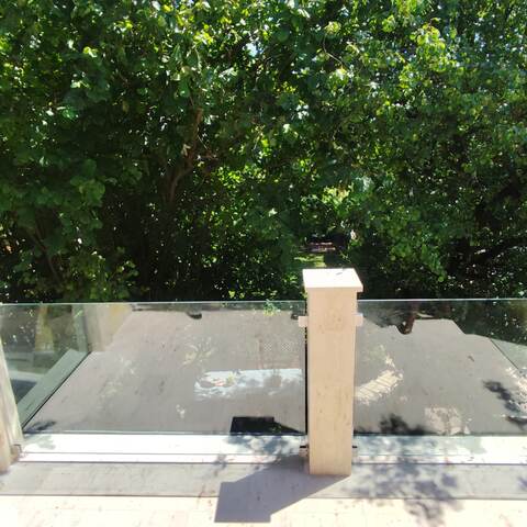 A teljesen keret nélküli, padlóra vagy oldalra szerelt U-profilban futó üvegkorlát a legstabilabb és legprémiumabb rendszer.